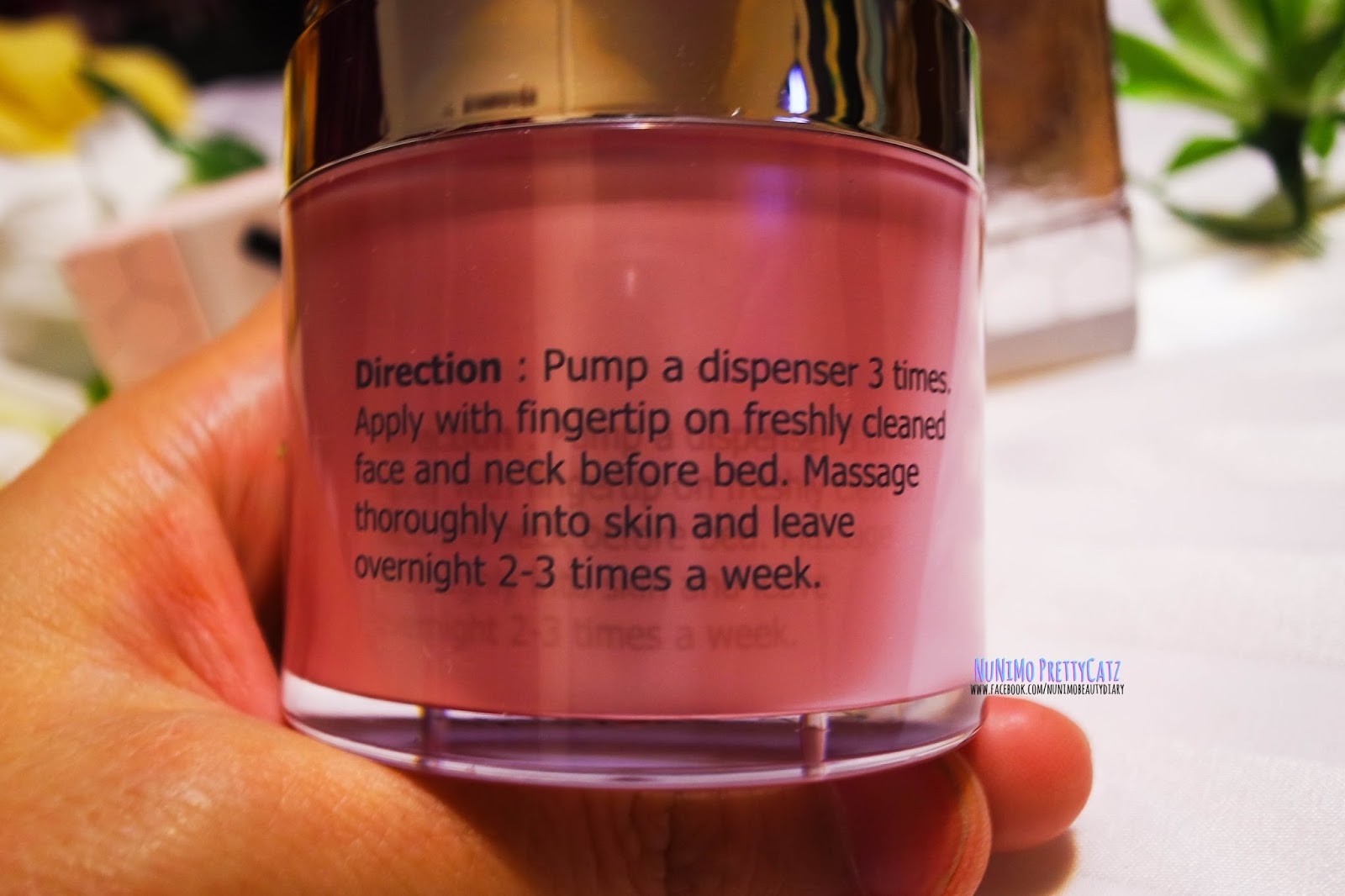 (ควรนวดหลังทำความสะอาดใบหน้าก่อนเข้านอน สัปดาห์ละ 2 ครั้ง โดยปั้มครีม 3 ครั้ง)