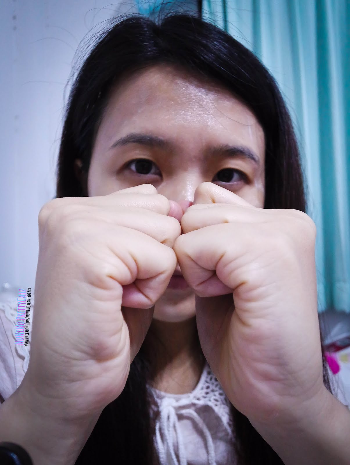 โหนกแก้ม>>>ใช้สันด้านข้างระหว่างนิ้วโป้งกับนิ้วชี้ นวดทีละข้างออกแรงกดแก้ม แล้วเคลื่อนฝ่ามือไปยังหู แล้วเคลื่อนลงบริเวณหลอดน้ำเหลืองข้างใบหู และทำอีกข้างหนึ่ง