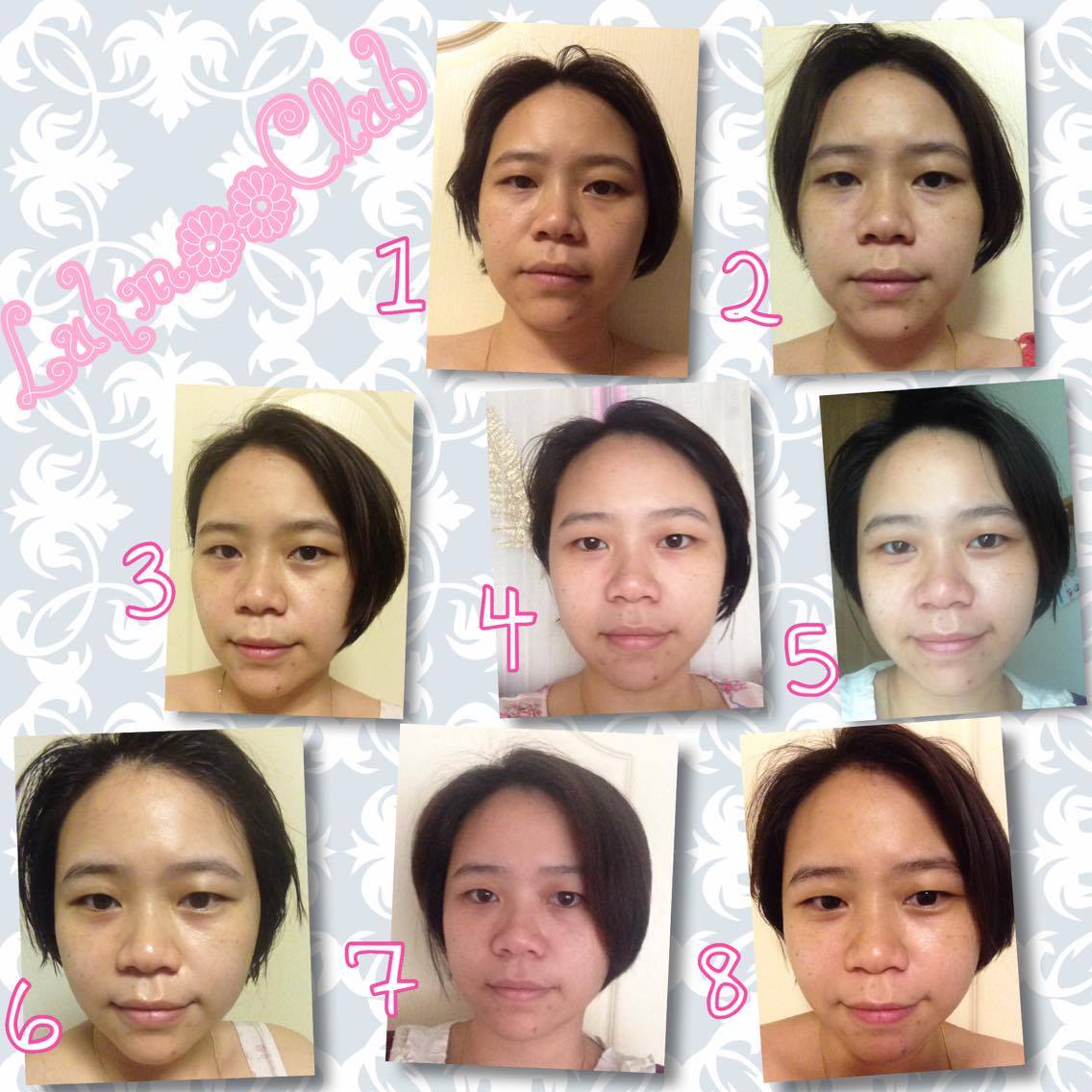 ภาพนี้เป็นการเปรียบเทียบ รูปทางซ้ายใช้ white lucent ครั้งแรกค่ะ day 1 และทางขวา หลังจากใช้มา 8 วันค่ะ day 8 |