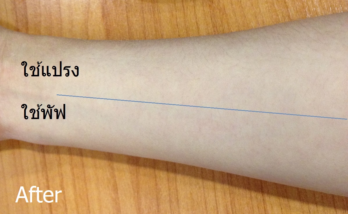 มองจากรูปอาจจะไม่เห็นความต่าง แต่ถ้ามองใกล้ๆ การใช้พัฟจะได้ผิวที่เนียนกว่า
