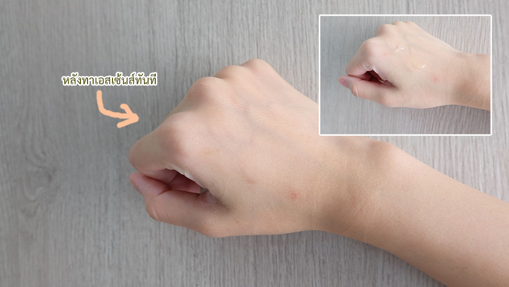 เนื้อเอสเซนส์ซึมง่ายมากกก เนื่องจากเนื้อสัมผัสค่อนข้างเบา ทำให้ทาแล้วไม่ทิ้งความเหนียวเหนอะหนะ