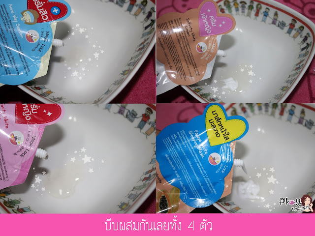 ขั้นตอนวิธีทำ ก็ง่ายมากๆค่ะ โดยการบีบเซรั่มสิวสัก 1 กรัม บีบเซรั่มเจ้าหญิง 2-3 กรัม ตามด้วยบีบครีมเจ้าหญิงสัก 2 - 3 กรัม จากนั้นบีบมาส์กหน้าใสมะละกอเพิ่ม 2-3 กรัมลงในถ้วยค่ะ หรือจะกะปริมาณส่วนผสมตามใจชอบกันได้เลยนะคะ