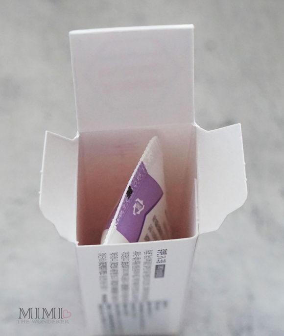 Packaging ตัวนี้มาในกล่องกระดาษแข็ง โทนสี ขาว-ม่วง-แดง มีความหลายสี แบบน่ารักๆ สไตล์เกาหน่อยๆปริมาณ 15 มล.