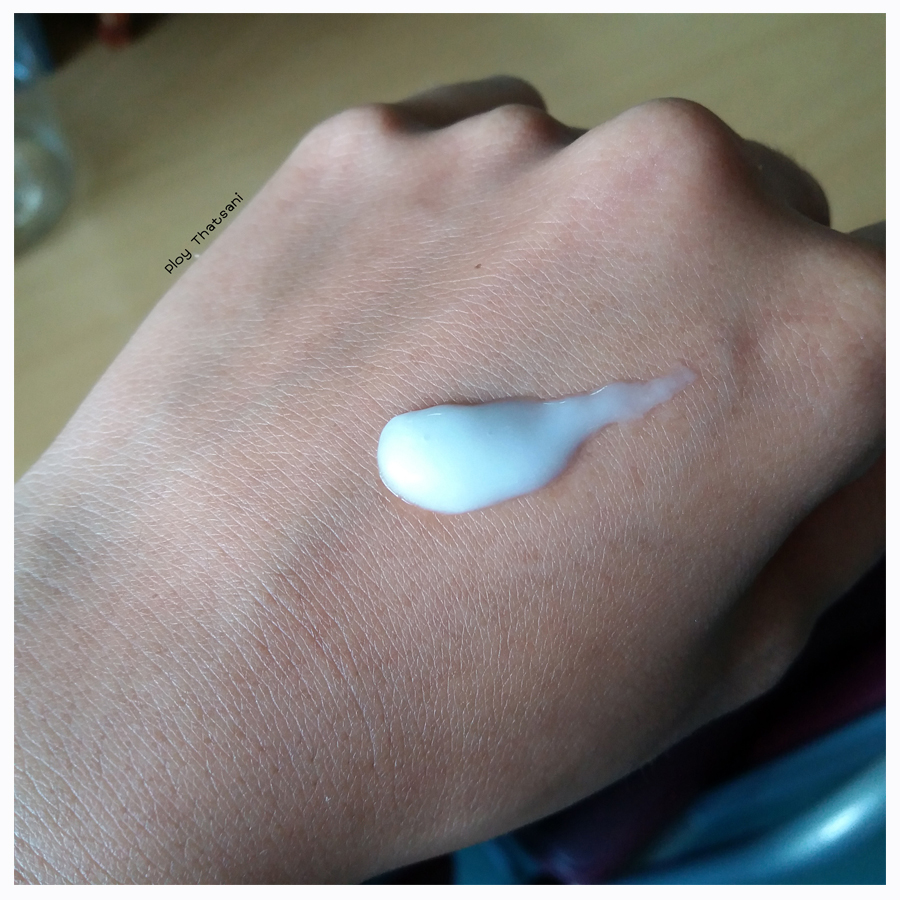 เนื้อครีมออกเหลวและบางเบา มีสีขาว ไร้กลิ่นน้ำหอม