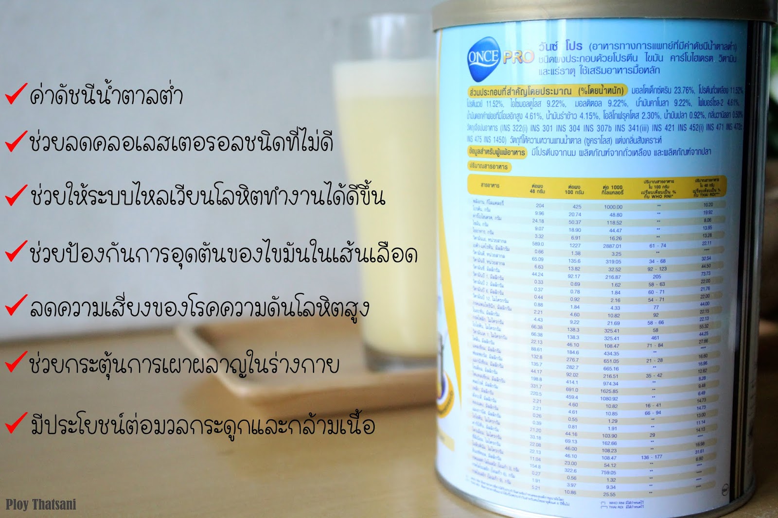 สำหรับ ONCE PROอาหารทางการแพทย์ดัชนีน้ำตาลต่ำก็มีค่า GI ต่ำเช่นกันค่ะ ซึ่งจะเป็นอาหารชนิดผงที่มาในรูปแบบกระป๋องที่ประกอบไปด้วยโปรตีน ไขมัน คาร์โบไฮเดรต วิตามินถึง 17 ชนิดและแร่ธาตุต่างๆ 14 ชนิด ที่มีคุณสมบัติและส่วนประกอบสำคัญ ดังนี้ค่ะ