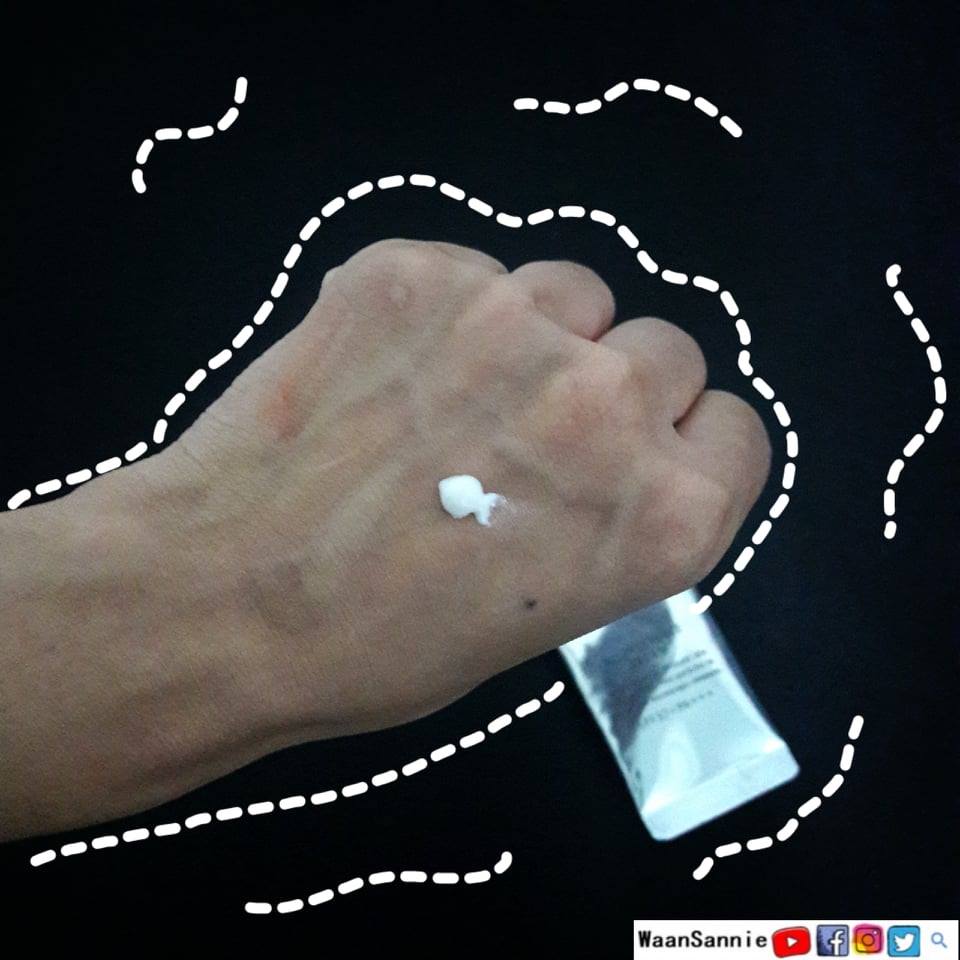 เนื้อครีมสีขาวๆขุ่นๆ แบบในรูปเลย ข้นๆดีค่ะ เกลี่ยง่าย ซึมไว