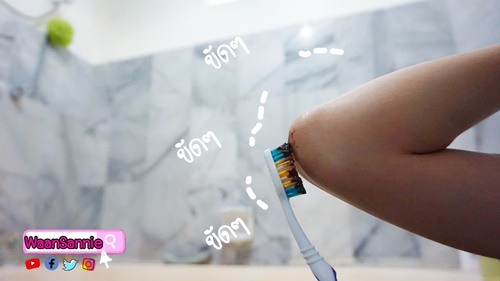ที่ตายแล้วให้หลุดออก2. เจลอโรเวล่าต่างๆ จะช่วยปลอบประโลมผิว และช่วยให้ผิวชุ่มชื่น3 .แปรงสีฟันที่ไม่ใช้แล้ว เอามาช่วยขัดผิวบริเวณ คอ ข้อศอก เข่า ตาตุ่ม หนังบริเวณนี้จะหนาหน่อยสามารถขัดได้ ยกเว้นคอ อาจจะต้องเบามือหน่อย