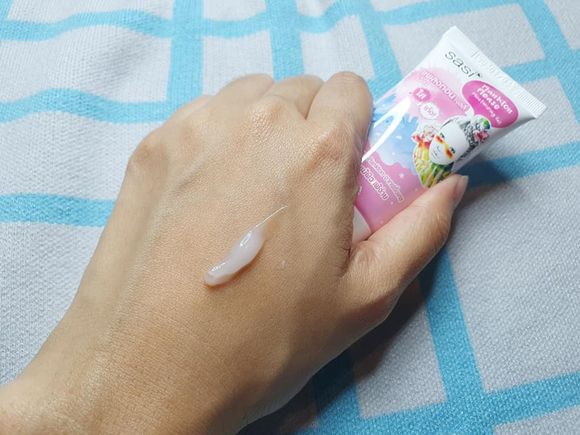 เนื้อครีมสีขาวขุ่นบางเบา เกลี่ยง่ายมาก ไม่หนักหน้า ทาแล้วซึมซับไว ไม่ทิ้งคราวขาวแถมหน้าไม่วอกด้วย