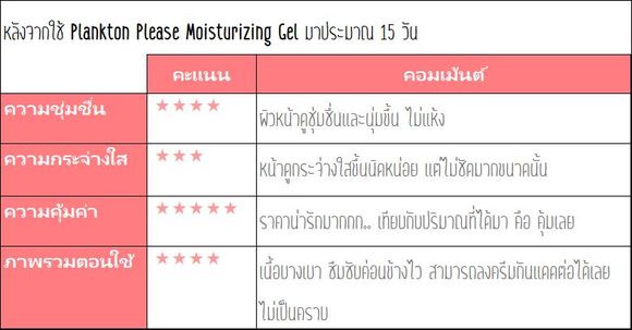 มาเริ่มกันที่ตัวแรกเลยแล้วกันPlankton Please Moisturizing Gel (แพลงตอน พลีส มอยเจอร์ไรซิ่ง เจล)เป็นเจลบำรุงผิวหน้า เนื้อเจลเป็นสีขาวขุ่น กลิ่นหอมอ่อนๆ ไม่มีแอลกอฮล์ไม่มีสารพาราเบน