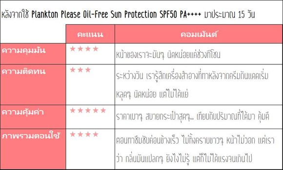ต่อกันด้วย PlanktonPlease Oil-Free Sun Protection SPF50 PA++++ (แพลงตอน พลีส ออยล์ฟรี ซัน โพรเทคชั่น เอสพีเอฟ 50 พีเอ++++) เป็นครีมกันแดดที่มีคุณสมบัติปกป้องและบำรุงผิวหน้าจากมลภาวะและแสงแดดด้วยค่าSPF 50 PA++++ ที่ช่วยปกป้องผิวจากรังสีUVA และ UVB