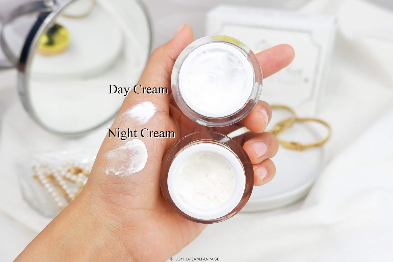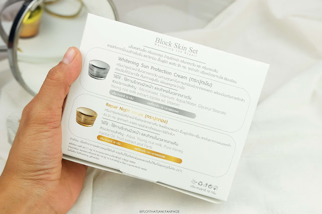 ในเซ็ตนี้ก็จะประกอบไปด้วยครีมกลางวัน และกลางคืนนะคะ ซึ่งครีมทั้งสองตัวจะมีส่วนประกอบสำคัญอย่างน้ำนมข้าวเข้มข้น และวิตามินต่างๆ ไม่มีส่วนประกอบที่ก่อให้เกิดการแพ้ค่ะ สรรพคุณของเซ็ตนี้คือ จะเน้นช่วยปรับผิวหน้าให้ขาวกระจ่างใส ลดการเกิดสิว ลดรอยสิว ฝ้า กระ จุดด่างดำต่างๆ ฟื้นฟูผิวที่อ่อนแอให้กลับมาแข็งแรง พร้อมช่วยมอบความชุ่มชื้นให้กับผิว ให้ผิวดูฉ่ำน้ำ เรียบเนียนอย่างเป็นธรรมชาติค่า