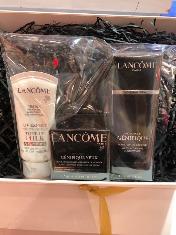 ค่ะตามนั้น คุยกับ BA เลยได้ความว่าซื้อ Genifique 30 ml. เราสามารถเลือกได้ว่าจะเอา Eye Serum หรือครีมกันแดดก็ได้ แต่ของมีจำนวนจำกัด BA บอกรู้สึกเหมือนว่าตัว Eye serum น่าจะใกล้หมดแล้ว เลยเอากันแดดแทน (ครีมกันแดดของน้องหมดพอดี เลยเลือกมาให้นางซะเลย)