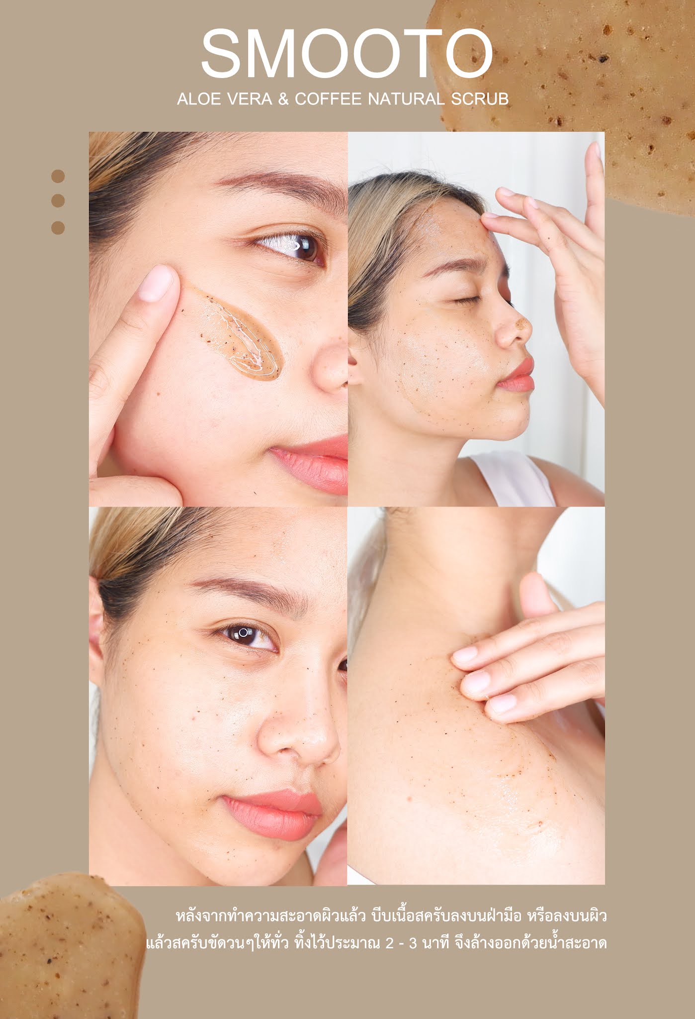 ซึ่งเพื่อนๆคนไหนที่ยังไม่มีสูตรขัดผิวที่ชื่นชอบ หรือไม่ชอบผสมสครับทำเอง กำลังมองหาสครับถูกและดี พกพาสะดวก ใช้งานง่ายเพียงแค่หมุนบิดฝาเกลียว บีบซอง ต้องลองสครับกาแฟสมูทโตะซองนี้เลย ผิวสวยได้ง่ายๆแบบไม่ยุ่งยาก ไม่หลายขั้นตอน รับรองว่าถูกใจ ใช้แล้วต้องปลื้มเหมือนพลอยแน่นอนค่ะ