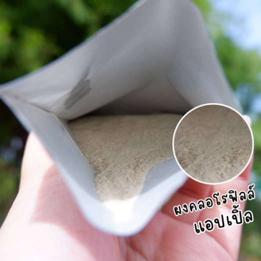 ผงละเอียดมาก ละลายน้ำง่าย หอมกลิ่นแอปเปิ้ล