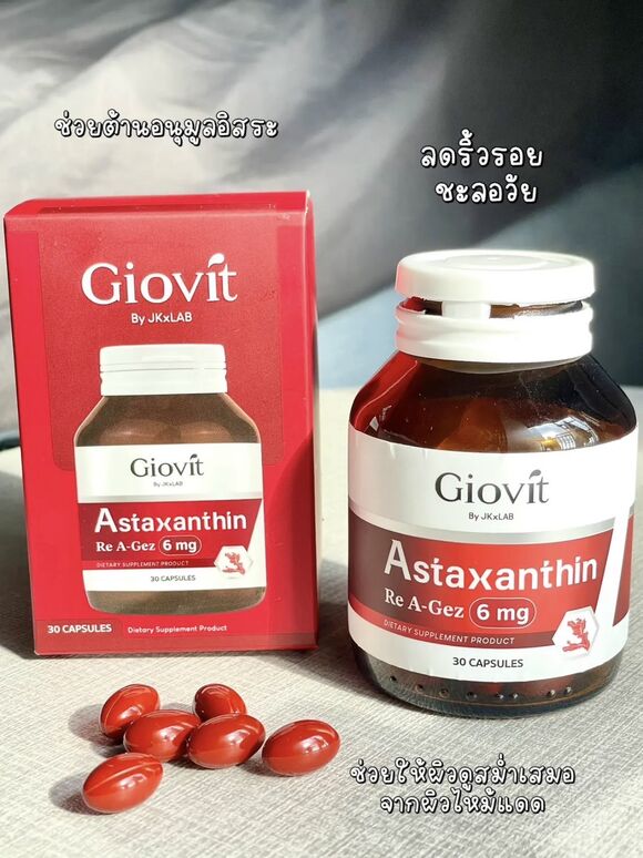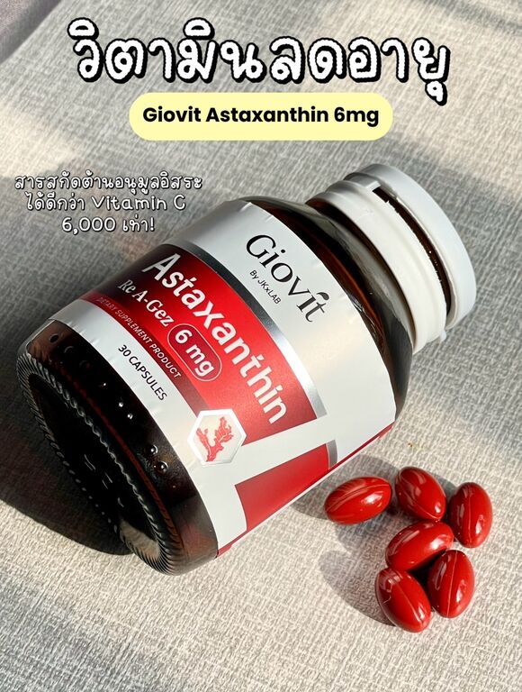 แอสตาแซนธินจีโอวิต (Giovit Astaxanthin) กระปุกนี้นั่นเองค่า เป็นแอสตาแซนธิน 6 mg. ซึ่งเพียงพอในหนึ่งวัน สารสกัดนำเข้าจากประเทศนิวซีแลนด์ ช่วยต้านอนุมูลอิสระ ลดริ้วรอย ดูแลผิวโดยรวมให้ดีขึ้น 🥰