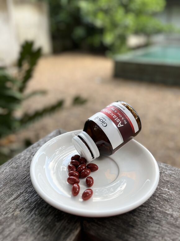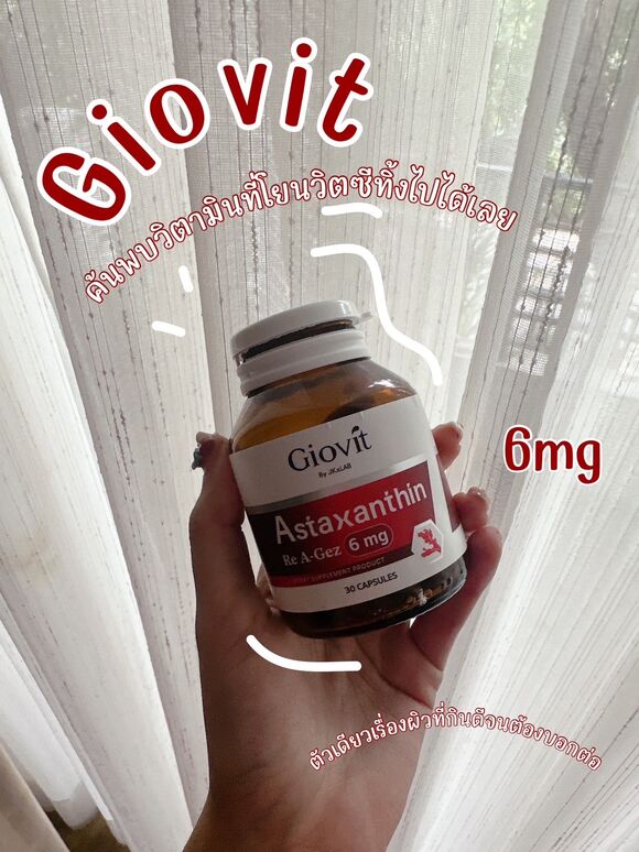จีโอวิตแอสตาแซนธิน (Giovit Astaxanthin) เป็นตัวฮอตฮิตในตอนนี้เลยก็ว่าได้ ความปังคือ “สารสกัดที่ต้านอนุมูลอิสระได้มากกว่าวิตซีถึง 6000 เท่า!!! นำเข้าจากนิวซีแลนด์ ที่สุดของสารต้านอนุมูลอิสระ ใน 1 เม็ด มีแอสตาแซนธิน 6 mg เพียงพอใน 1 วัน”ช่วยในเรื่องสุขภาพของผิว ทั้งเรื่องริ้วรอย ลดรอยสิว ลดความหมองคล้ำจากแสงแดด ให้ผิวทนต่อแดด ปรับผิวโดยรวมให้ดีขึ้น