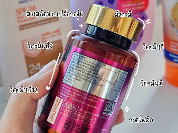 มาดูส่วนผสมที่เราอยากแนะนำมาก ๆ ก็คือ สารสกัดจากเปลือกองุ่น นอกจากนี้ยังใส่สังกะสี และวิตามินต่าง ๆ มาด้วย เช่น วิตามินซี วิตามินบี6 วิตามินบี12 วิตามินอี ช่วยเรื่องผิวเน้นๆเลยค่ะ