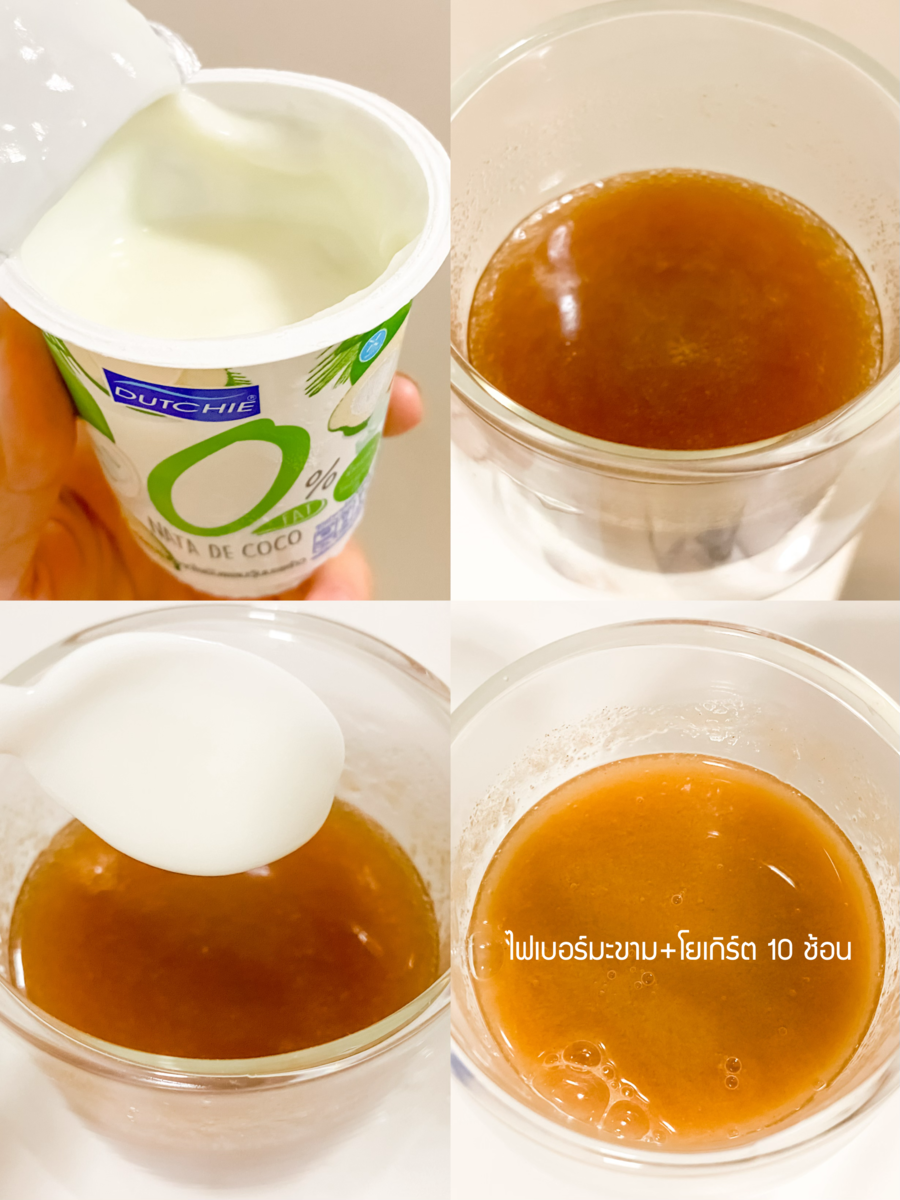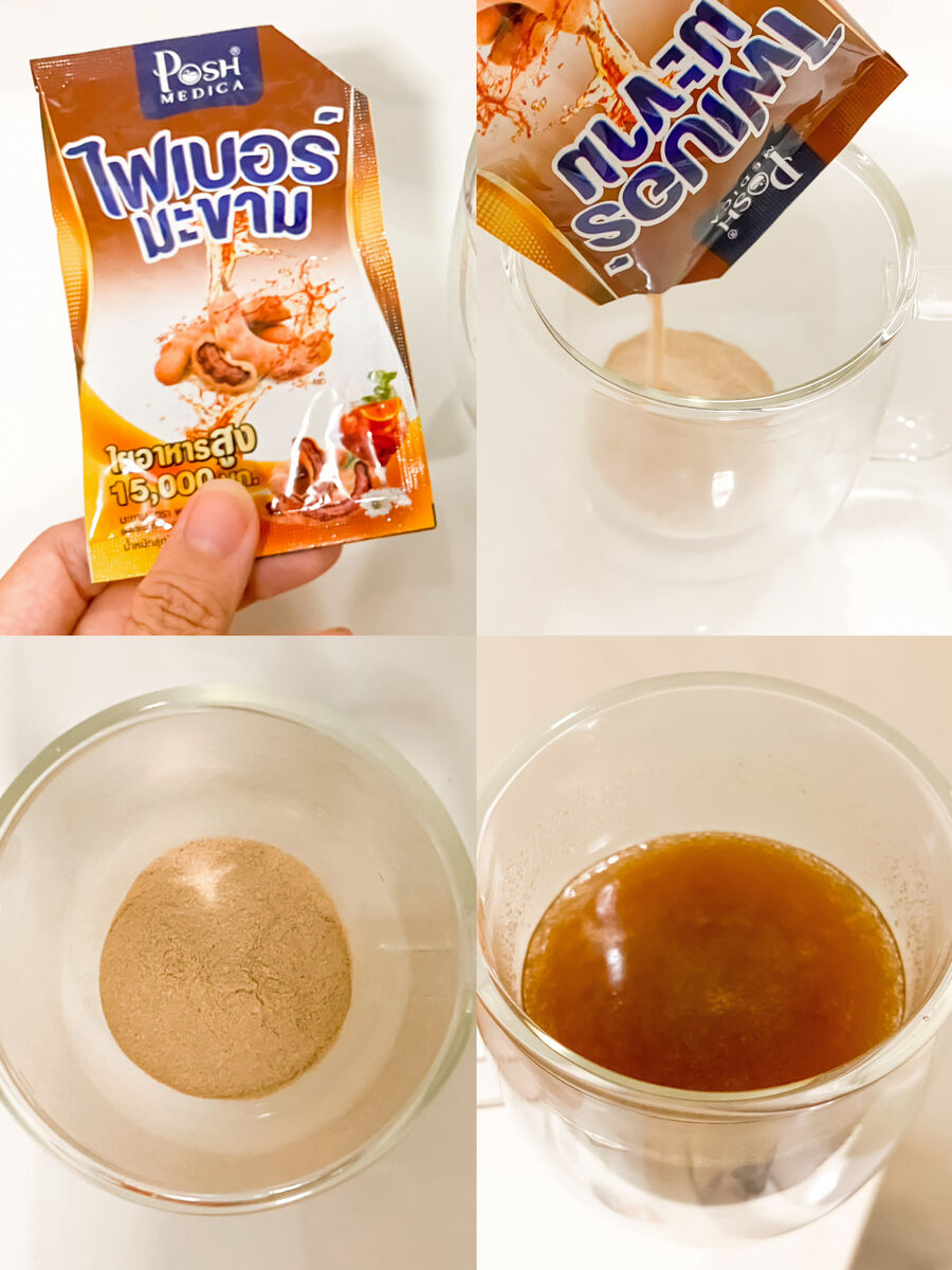 1.ชงตัวไฟเบอร์มะขามก่อน ชงกับน้ำเปล่าอุณหภูมิห้อง