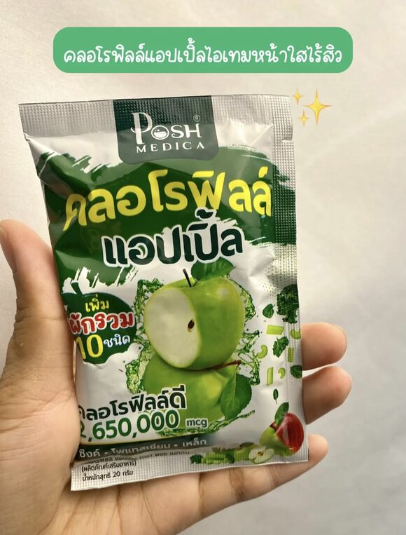 Posh Medica Chlorophyll Apple คลอโรฟิลล์แอปเปิ้ล ของแบรนด์พอชเมดิก้า คือพอได้ลองแล้วชอบมากก อร่อยมากเลยค่ะ