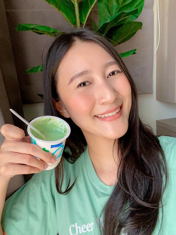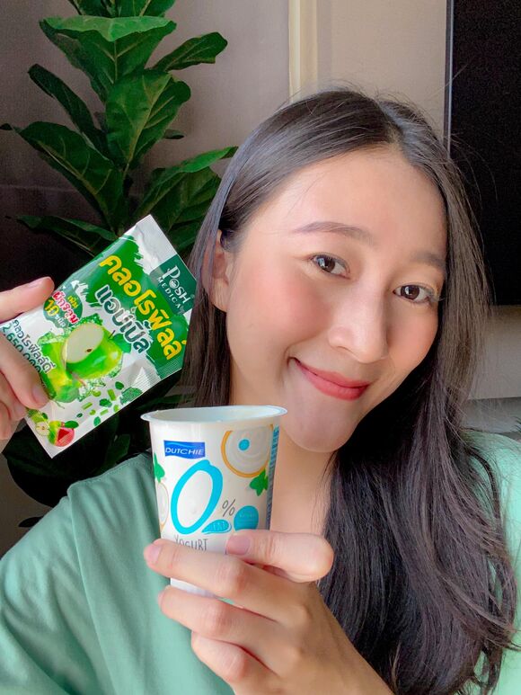 วิธีทาน : ผสมคลอโรฟิลล์แอปเปิ้ล 1 ซองกับโยเกิร์ต