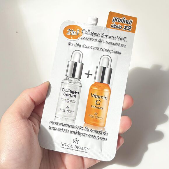 ถัดมาเป็นเซรั่มบำรุงผิว Collagen Serum + Vitamin C สำหรับใครที่ผิวแพ้ง่ายเจอเซรั่มที่มีส่วนผสมของวิตามินซี ใช้บ่อยๆ แล้วมีความระคายเคือง แนะนำตัวนี้เลย