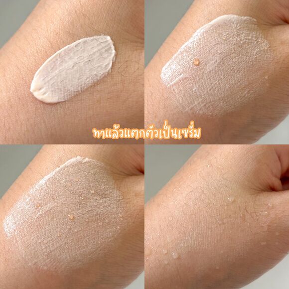 แนะนำตัวนี้เลยค่ะ ให้ฟีลเหมือนทาเซรั่มเลยเกลี่ยแล้วซึมไว เติมความชุ่มชื้นอีกด้วย เนื้อดีดีของเค้าจะปาดแล้วแตกตัวเป็นเซรั่ม สบายผิว บางเบาสุดๆ สารสกัดหลักๆ ก็จะมีวิตามินซี คอลลาเจน วิตามินบี 3 วิตามินอี นอกจากกันแดดแล้วยังช่วยบำรุงให้ผิวกระจ่างใส ลดเลือนรอยแดงรอยดำ กระชับรูขุมขน ตัวนี้คือเหมาะกับทุกสภาพผิว ไม่ทำให้ผิวอุดตัน แบบหลอด 129.- แบบซอง 49.- พิกัด 7-11 ส่วนแบบหลอดมีเฉพาะที่ Watsons เลยค่า