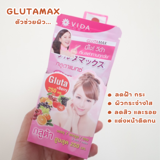 GlutaMax ฟังจากชื่อก็เชื่อว่ามิกซ์จริงๆ ค่า เป็นอีกตัวที่ช่วยเสริมสร้างให้ผิวขาวอมชมพู กระจ่างใสขึ้น และยังช่วยลดสิว/รอยสิวได้อีกด้วยนะคะ สาวๆ ที่มีปัญหาต้องลองแล้วน้า ว่าจะหน้าใสเป็นแบบไหน “มาเมนต์คุยกันได้เลย” เพราะจูนลองแล้วยังติดใจเลยค่ะ^^
