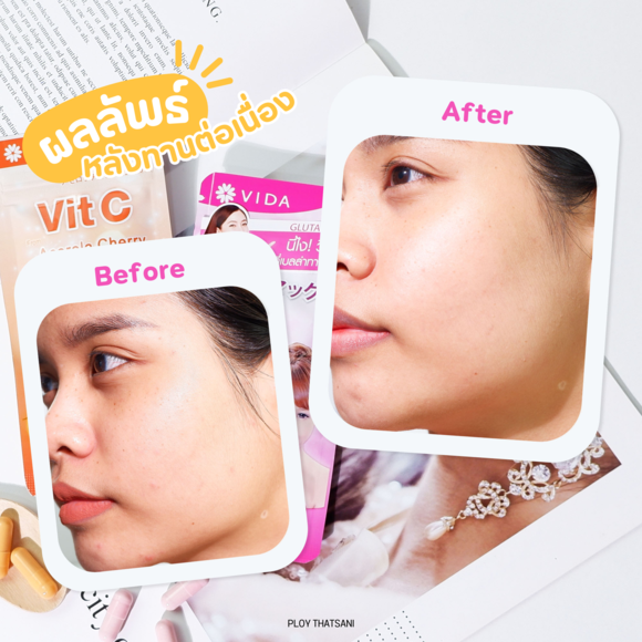 📍ด้านผลลัพธ์หลังทานกลูต้าและวิตามินซีของ Vida บอกเลยว่ามันปังมาก! ตัวพลอยเองทานแบบต่อเนื่องมามากกว่า 2 สัปดาห์ ก็เห็นผลลัพธ์เรื่องผิวชัดเจนที่สุด! พวกสิวเนี่ยยุบลงไว รอยสิว รอยดำก็จางลงหลังสิวหาย หน้าใสขึ้น ดูมีความเปล่งปลั่ง เรียบเนียน รอยคล้ำจางลง ซึ่งพอผิวดีขึ้น ก็แต่งหน้าแล้วเครื่องสำอางติดทนทานดีกว่าเดิมด้วย และที่สำคัญรู้สึกว่าร่ายกายค่อย ๆ แข็งแรงขึ้น ไม่ค่อยเป็นหวัดง่าย ไม่จามบ่อยครั้ง คือดีต่อผิว ดีต่อร่างกายที่สุด!