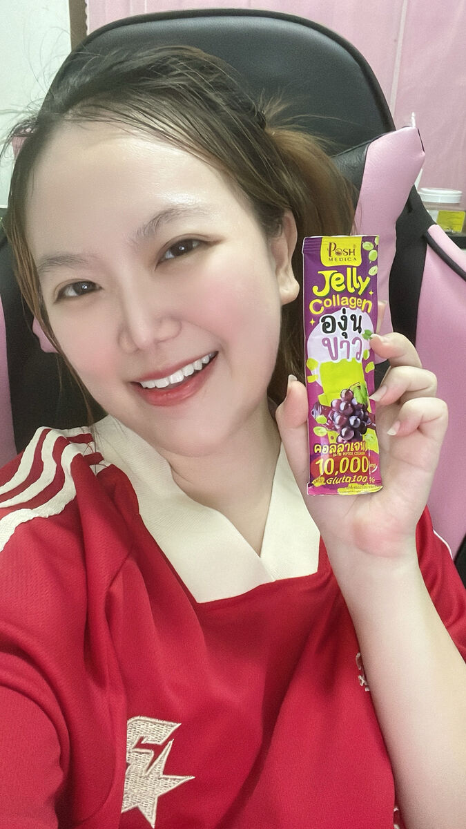 นี่เลยจ้า “Jelly Collagen องุ่นขาว“ เจลลี่คอลลาเจนตัวนี้ เป็นน้องใหม่ของแบรนด์ Posh Medica รอบนี้น้องมาเป็นเจลลี่คอลลาเจนองุ่นขาว ที่มาในรูปแบบซองให้เคี้ยวกันได้เพลินๆ เอาใจสายชอบทานขนม กินจุกจิกแบบไม่รู้สึกผิด แถมยังบำรุงผิว ผม เล็บอีกด้วย ไม่อ้วนด้วยน๊าเพราะน้ำตาล 0% ค้าบบบบส่วนผสม/สารสกัด/สรรพคุณ ของเจลลี่คอลลาเจนองุ่นขาวแบบซองเคี้ยวซองนี้ - มีคอลลาเจนรวม 10,000 มก/ซอง (ได้ทั้งคอลลาเจนไดเปปไทด์ และ ไตรเปปไทด์ เลยน๊า)- ส่วนผสมสำคัญเลยคือสารสัดจากเมล็ดองุ่นขาว ช่วยบำรุงผิวให้ดูมีเลือดฝาดอมชมพู - กลูต้าให้ผิวขาว ข้อนี้น่าจะถูกใจสาวๆมาก - วิตามินเอ บำรุงผิวพรรณให้สวยสดใส ลดการอักเสบ - ซิงค์/ไบโอติน ลดปัญหาสิว บำรุงผม เล็บให้แข็งแรง ดูสุขภาพดีขึ้น บำรุงไปเลยเน้นๆได้ประโยชน์แบบเต็มๆ ไ่มีสารอันตรายต่อร่างกายแน่นอนเนื้อเจลลี่คอลลาเจนองุ่นขาว เป็นเนื้อเจลลี่ที่ทานง่าย หอม รสชาติอร่อย เนื้อหนึบหนับอย่างที่บอก เคี้ยวเพลินมาก ไม่ต้องรู้สึกผิด สาวๆไม่ต้องกลัวอ้วนเลยเพราะน้ำตาล 0% อย่างแน่นอน สาวๆคนไหนสนใจลองเอาเจลลี่คอลลาเจนองุ่นขาวซองนี้ไปเคี้ยวเพลินๆแบบต่อเนื่องรับรองเห็นผลแน่นอน ไปหาตำกันได้ พิกัด : 7-11 ในราคาเพียงซองละ 39.- เท่านั้นเอง อย่าลืมไปหามาลองกันน๊า #เจลลี่องุ่นขาว #เจลลี่ตราพอช #เจลลี่คอลลาเจน #เจลลี่กลูต้า #เจลลี่เซเว่น