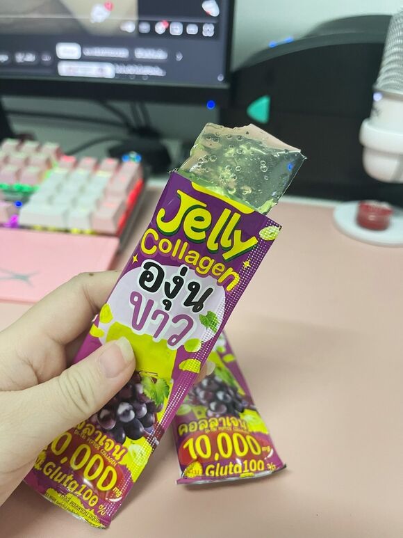 เนื้อเจลลี่คอลลาเจนองุ่นขาว เป็นเนื้อเจลลี่ที่ทานง่าย หอม รสชาติอร่อย เนื้อหนึบหนับอย่างที่บอก เคี้ยวเพลินมาก ไม่ต้องรู้สึกผิด สาวๆไม่ต้องกลัวอ้วนเลยเพราะน้ำตาล 0% อย่างแน่นอน สาวๆคนไหนสนใจลองเอาเจลลี่คอลลาเจนองุ่นขาวซองนี้ไปเคี้ยวเพลินๆแบบต่อเนื่องรับรองเห็นผลแน่นอน