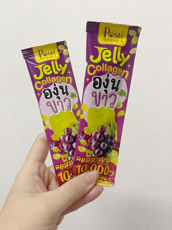 นี่เลยจ้า “Jelly Collagen องุ่นขาว“ เจลลี่คอลลาเจนตัวนี้ เป็นน้องใหม่ของแบรนด์ Posh Medica รอบนี้น้องมาเป็นเจลลี่คอลลาเจนองุ่นขาว ที่มาในรูปแบบซองให้เคี้ยวกันได้เพลินๆ เอาใจสายชอบทานขนม กินจุกจิกแบบไม่รู้สึกผิด แถมยังบำรุงผิว ผม เล็บอีกด้วย ไม่อ้วนด้วยน๊าเพราะน้ำตาล 0% ค้าบบบบ