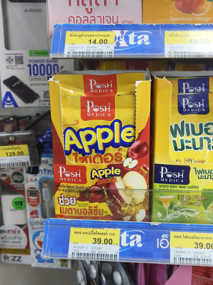 เราเป็นคนขับถ่ายยากเลยชอบหาอะไรใหม่ใน 7-11 ตลอดๆ ปกติกินพวกไฟเบอร์มะขาม ไฟเบอร์มะนาว ของพอชเมดิก้าอยู่แล้ว วันนี้เลยมาลอง แอปเปิ้ลไซเดอร์ตราพอช ที่ 7-11 ซองละ 39 บาท
