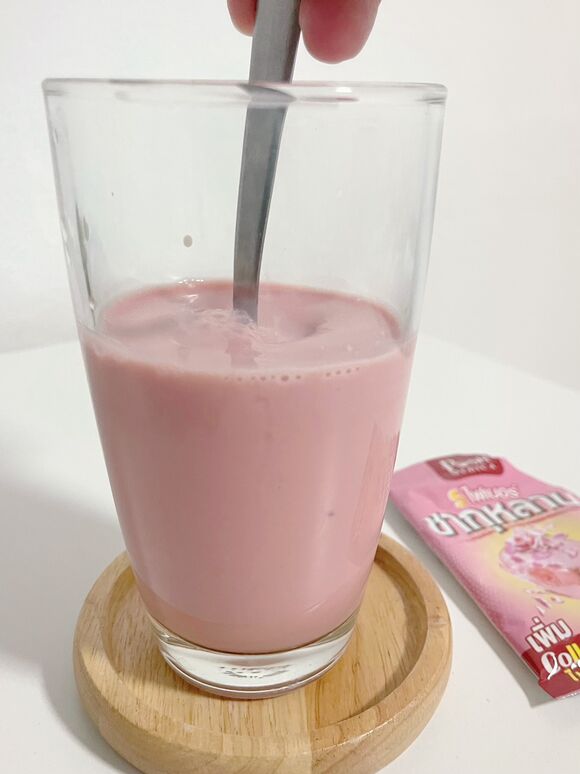 อาจจะเพิ่มการใส่น้ำแข็งลงไปด้วยก็ฟินขึ้นน้า แต่เราอดใจไม่ไหวจริง ตอนที่คนผสมกัน กลิ่นน้องตีขึ้นจมูก แบบหอมมากเหมือนอยู่ในพวกร้านคาเฟ่ร้านชาหอมๆเลย