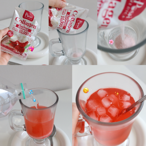 วิธีการรับประทาน : ทานคอลลาเจนลิ้นจี่วันละ 1 ซอง สามารถละลายได้ในน้ำเย็น หรือน้ำธรรมดา 150-200 มล. หรือดื่มเมื่อต้องการ
