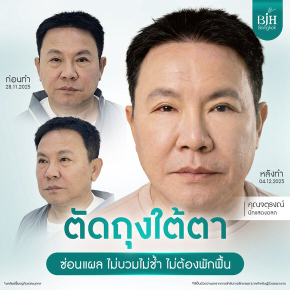 เพิ่งรู้ว่าถุงใต้ตาส่งผลกับหน้ามากกว่าที่คิดจากคุณจตุรงค์ มกจ๊ก ตัดสินใจจัดการถุงใต้ตา กับ โรงพยาบาลบีเจเอช ( BJHBangkok ) คืนความสดใสเพื่อการทำงานอย่างเต็มที่